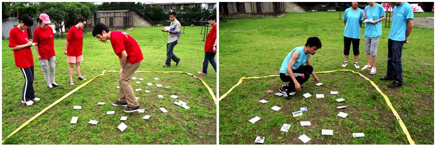 项目介绍:每个队伍分别有2-3次进入绳圈的机会,进入绳圈60秒钟内按照培训师的要求30张数字卡片交给培训师,那个队伍最先完成获胜。