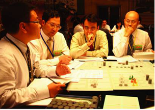 针对高级管理团队:通过商战模拟,体验在商战竞争中的决策过程,认识在竞争状态下的心态变化,了解竞争、合作、双赢战略的意义,启发双赢的战略思维;了解竞合思想,增强在竞争环境下善于合作,把握机会的能力;启发竞争环境下的全局观念、胸怀气量以及突破思维定势以实现双赢;了解悖论、博弈论等知识;