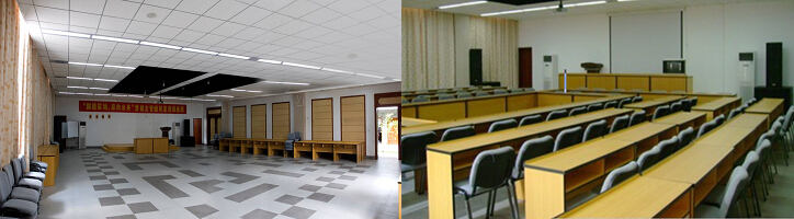 室内培训厅:设有4间分别可容纳50—300人不等的标准化培训教室,可同时接待500多人参加培训。培训教室各自独立、间通道合理间隔,互不干扰。教室内装有高配置电脑、电脑投影仪、音响、家庭影院等各类相关教学设备。