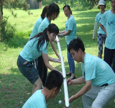 11:00-12:30南水北调项目介绍:  团队以小组为单位分开,运用PC管接力方式将资源最大限度运至目的地。 培训目标:  如何在障碍下进行有效的沟通;PLAN—DO—CHECK—ACTION良好的办事程序;增进相互沟通与协作;培养团结一致、密切配合,共同克服困难的团队精神;认识到沟通的重要性,培养良好的团队沟通能力;加强团队学习能力。