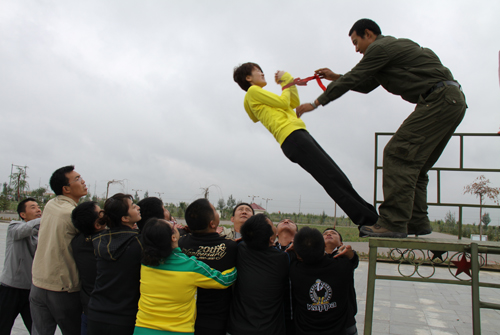 17:00-18:00毕业墙项目介绍:  团队拓展的压轴项目。在高4.2米的木墙面前,公司所有员工通过搭人梯的方式全部到达顶端。共同的胜利,在于每一位员工全心全力地付出――甘为人梯,见证整个团队的成长。经过一天的培训,参训团队已经反复演练应对难题的方法和能力,在团队内部已经出现了智者出谋划策、领导者果断决策、执行者坚决服从等一系列运行机制。 培训目标:  培养团队协调、合作的精神;2.如何进行有效分工与配合;3.加强共同解决问题的意识。