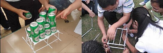 该项是一个集体进行的制作竞赛项目,每个小组分别具有:一把剪刀、一卷胶纸、三十张A4纸、一罐可乐易拉罐,制作出要求规格的“长江大桥”,经过检测、风力测试、承受力测试等评估,评定优胜项目。